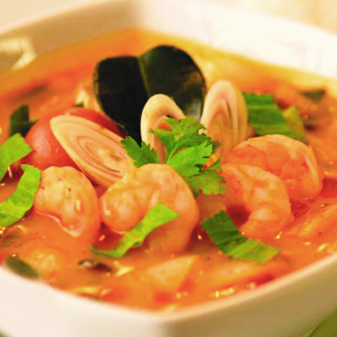 AVTENTIČNA PIKANTNA KISLA JUHA Z OKUSOM LIMONskE TRAVE, GALANGALA, LIMETINIH LISTOV, TAJSKEGA PETERŠILJA IN KORIANDRA Z GOBAMI, ČEBULO IN PARADIŽNIKOM
